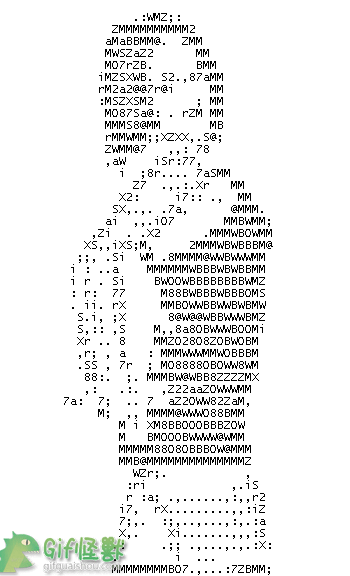 什么是字符画?就是用ASCII字符来近似组成图像,就像这样: