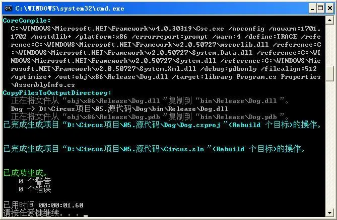 先假设输出目录中有Circus主目录,主目录下有Driver子目录,Cat和Dog的编译输出均在Driver下,并且以自己本身的名字建个目录。