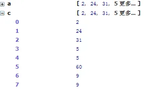 1 var a=[2,5,31,9,60,5,24,9]; 2 var c=a.sort(function(a,b){ 3 return a-b; 4 }) 5 document.write(c);