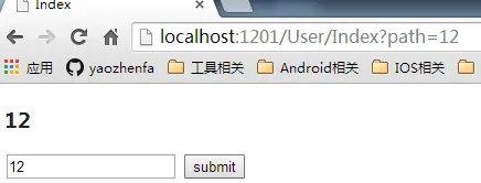 下面我们通过这个路径访问页面:http://localhost:1201/User/Index?path=12