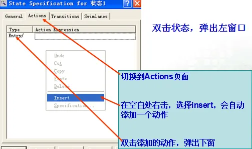 entry事件:进入该状态时的特定动作(入口动作)。