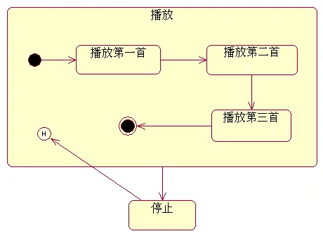 有时,当离开一个嵌套状态后,又需要重新进入该嵌套状态,但希望直接进入到上次离开嵌套状态时的最后一个子状态,而不想从该子状态机图的初始状态进入。