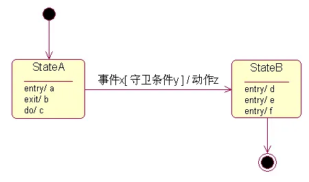 exit事件:退出该状态时的特定动作(出口动作)。