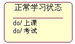 退出该状态时最后执行的特定动作,不带条件与参数。格式为:exit/动作
