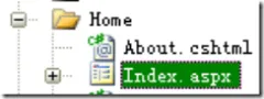 (3)我们这里介绍的是传统的方法,所以在Index里面没有相关的实现代码,要实现的是前台代码。这里Index跳转的是Views目录下面 Home文件夹下的Index.cshtml文件,由于其使用的是Razor模板,所以不能使用可视化的方式添加服务端控件。因此我们使用传统 的.aspx代替它,删除Index.cshtml,添加一个Index.aspx文件,代码同1里面的雷同,这样,运行网站就会出现我们想要的结果。
