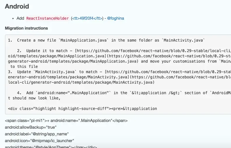 在RN的0.29版本中,Android的原生代码中增加了一个MainApplication.java的文件,原先的MainActivity.java的文件也有所调整。。。