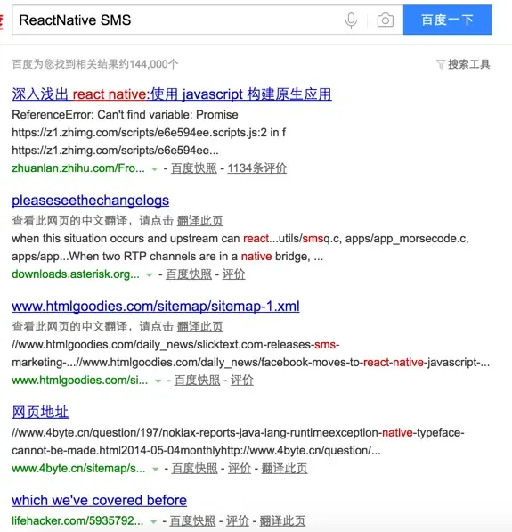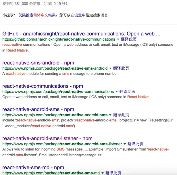 在百度上搜索ReactNative SMS,毛也没有搜到!