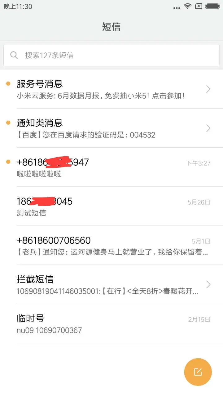 如上图,它把通知类的短信和普通短信进行了区分把通知类的短信摘出去了。。