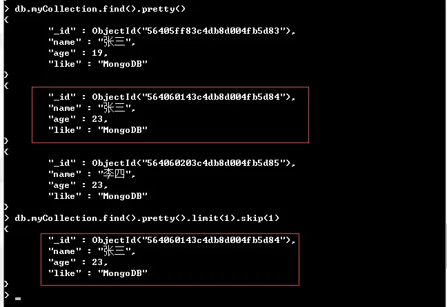 find() 方法 : 查询集合数据,find() 方法将在非结构化的方式显示所有的文件。pretty() 方法将以格式化的方式显示数据。