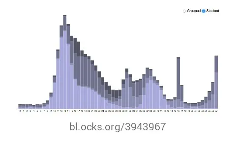 你可以想象:数据聚合是你经常用的东西———但首次制造出可视化后,数据在不断变化,对D3总体的无用来说,这个特性的可用性是重要的,它看起来是这样的: