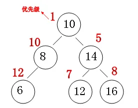 采用随机数的方法,但是”优先级“必须满足根堆的性质,当然是“大根堆”或者“小根堆”都无所谓,比如下面的一棵树: