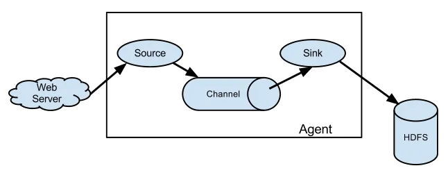 外部系统产生日志,直接通过Flume的Agent的Source组件将事件(如日志行)发送到中间临时的channel组件,最后传递给Sink组件,HDFS Sink组件可以直接把数据存储到HDFS集群上。