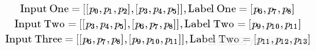 例如,如果input_size=3和num_steps=2,前几个训练的示例如下所示: