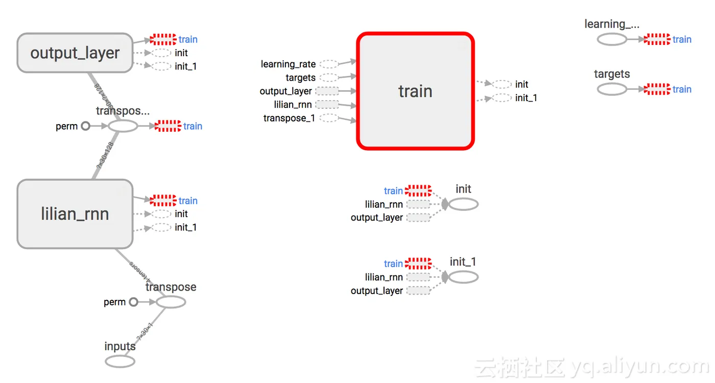 上图由示例代码构建的RNN图。“训练”模块已经“从主图表中删除”,因为它在预测时间内不是模型的实际部分。