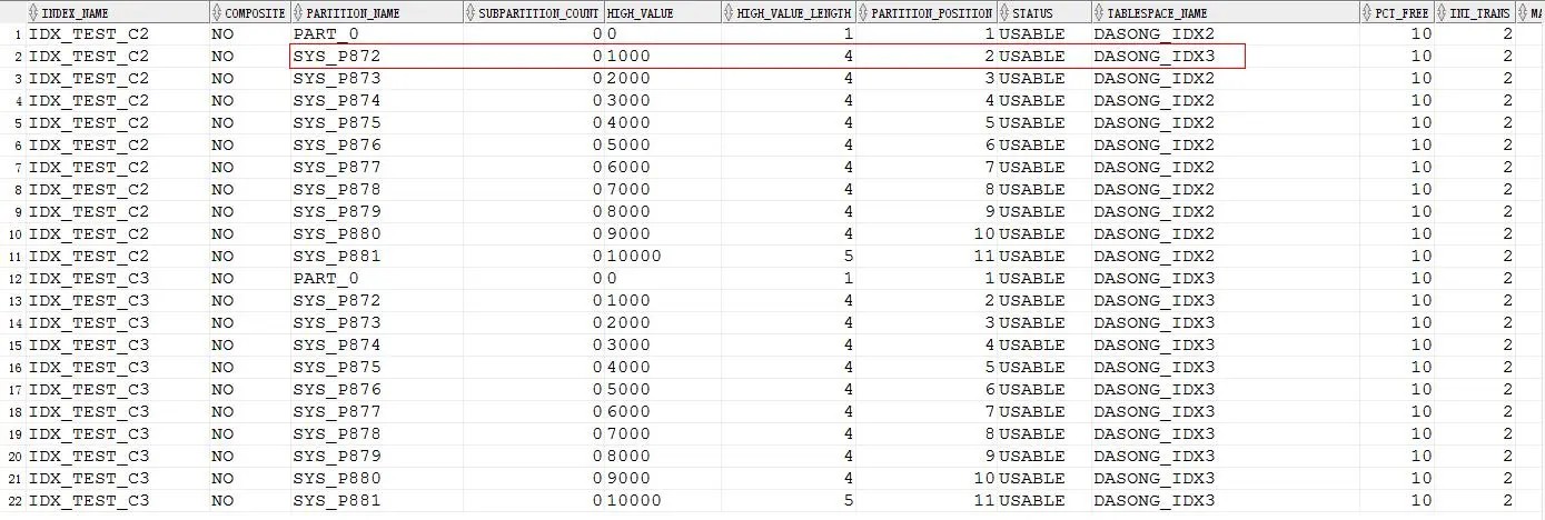 - alter index idx_test_c2 rebuild partition sys_p872 tablespace dasong_idx3;
