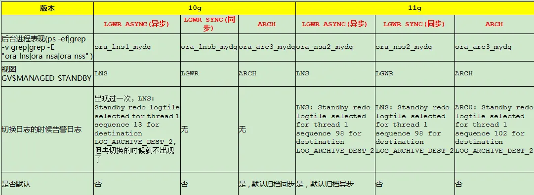 ③ 日志传输的2种方式:lgwr和arch,10g和11g有了变化