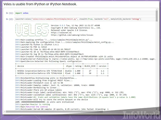 Veles并非单纯利用Python作为其粘合代码。IPython(如今已被更名为Jupyter)数据可视化与分析工具能够对来自Veles集群的结果进行可视化处理与发布。三星公司希望能够将该项目以开源形式发布,从而推进其进一步发展——例如面向Windows与Mac OS X。