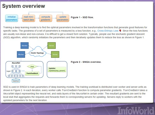 这套“深层学习”框架能够支持多种高强度机器学习功能,具体包括自然语言处理与图像识别。Singa最近被纳入Apache孵化器项目,这套开源框架致力于降低大规模数据的深层学习模型训练难度。