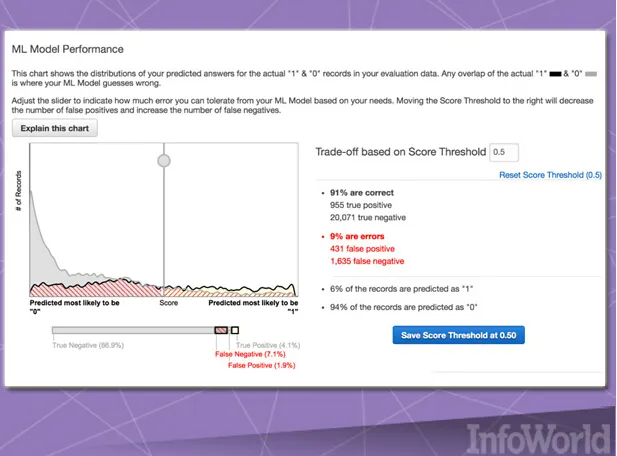 Amazon Machine Learning同时也是云巨头首次尝试推出机器学习即服务方案。它能够接入被保存在Amazon S3、Redshift或者RDS当中的数据,并能够运行二进制分类、多类分类或者数据递归以创建模型。然而,该服务高度依赖于Amazon本身。除了要求数据必须被存储于Amazon之内之外,其结果模型也无法进行导入与导出,另外训练模型的数据库集亦不可超过100 GB。当然,这只是Amazon Machine Learning的起步成效,其也足以证明机器学习完全具备可行性——而非技术巨头的奢侈玩物。