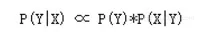 我们用贝叶斯公式来形式化地描述这个问题,令 X 为字串(句子),Y 为词串(一种特定的分词假设)。我们就是需要寻找使得 P(Y|X) 最大的 Y ,使用一次贝叶斯可得:
