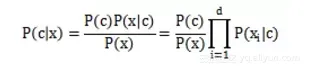 朴素贝叶斯(分类器)是一种生成模型,它会基于训练样本对每个可能的类别建模。之所以叫朴素贝叶斯,是因为采用了属性条件独立性假设,就是假设每个属性独立地对分类结果产生影响。即有下面的公式:
