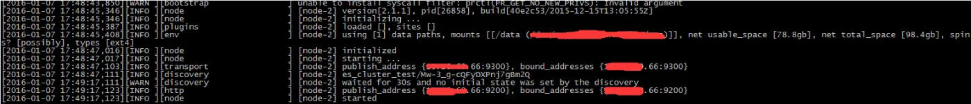 坑四:手动把四个host写进了discovery.zen.ping.unicast.hosts,并且手动指定discovery.zen.minimum_master_nodes的值,启动node以后出现报错,ping其他的node超时 or 不停的等待初始化;