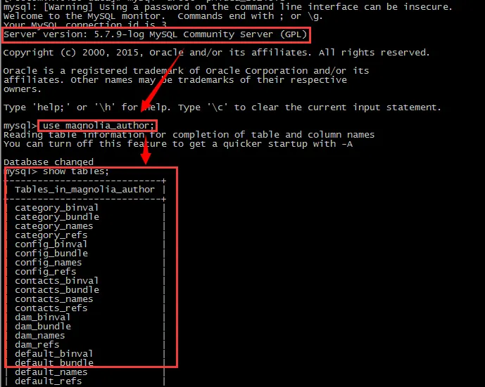 同样的,也可以使用这种备份恢复的方式来进行数据库升级,采用同一个源目标库,使用MySQL-5.7.9-GA作为目标库时,使用一样的步骤进行数据文件的恢复,