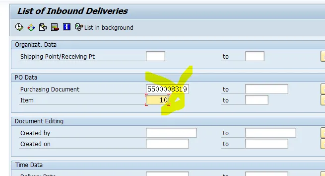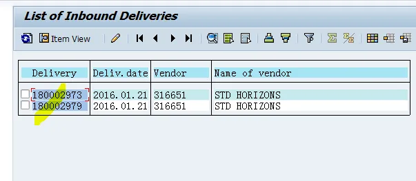 经过调查,发现,其第一个Item有2个inbound delivery,VL06I,查询与这个SA相关的inbound delivery,