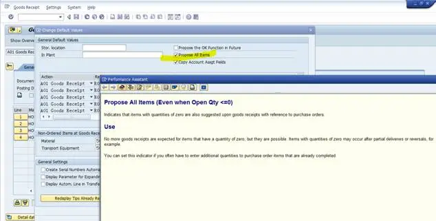 将来如果我们使用MIGO+101执行收货,个人不建议MIGO的设置界面勾选‘Propose all item‘这个选项。