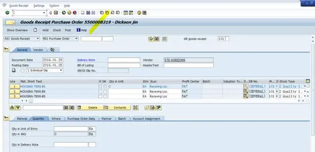 这样,在我们再次执行MIGO+101收货的时候,系统默认带出该SA的10 item的2个inbound delivery里的Item,加上该SA的20 item,共计3个item.