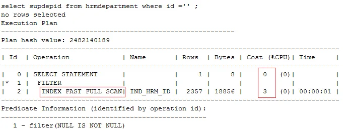 表hrmdepartment这种id是主键列,但是查询使用了id=''
