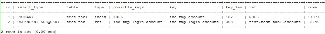 这个时候,问题已经基本定位了。在反连接的查询中,在这个问题场景中,需要对子查询的表添加一个索引基于login_account,可以和外层的查询字段映射,提高查询效率。