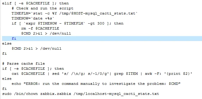等等,我看了看脚本,发现有些不大对劲啊,怎么调用的都是同一个脚本。/home/app/zabbix/script/get_mysql_stats_wrapper.sh