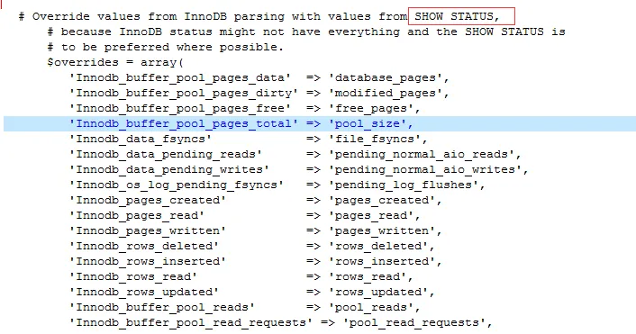 继续往下看,发现原来是取的show status输出的结果,里面定义了不少的数组去存放和映射。