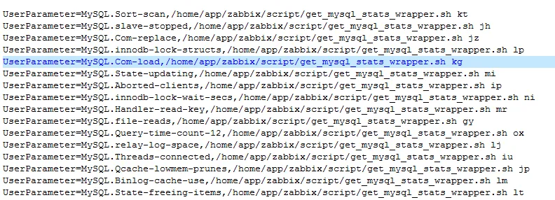 UserParameter=MySQL.Key-read-requests,/home/app/zabbix/script/get_mysql_stats_wrapper.sh gg
