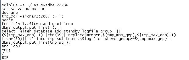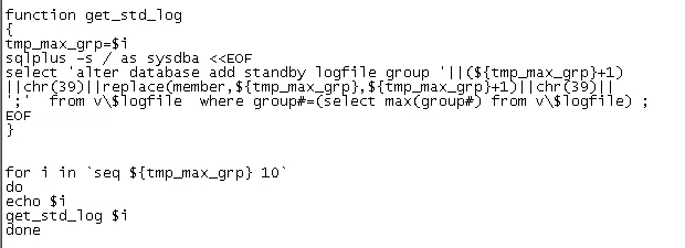 先来说说今天尝试的简单脚本,就是给主库添加standby logfile,这个需求听起来非常简单,都甚至在我的半自动化脚本中隐去了,但是把这个需求要落到纸面上来,简直了。