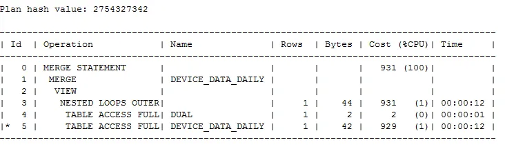查看v$session的信息,发现其中一个会话已经执行一条SQL超过了40分钟。这个SQL是merge语句,看来merge又摊上事了。