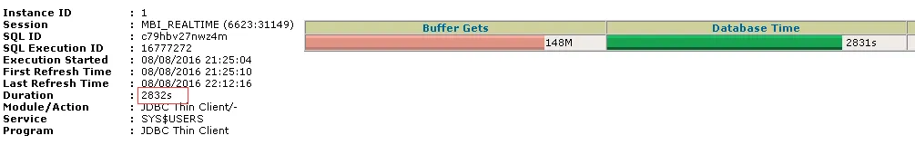 我们来看看执行的瓶颈在哪里。还是使用SQL Monitor来定位,一目了然。