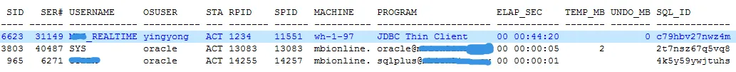 这个报警信息已经非常明确,CPU使用率很紧张了。这台服务器上运行着Oracle和MySQL实例,所以第一感觉是不是MySQL的慢查询导致的,结果登录到服务器端,发现MySQL的连接数很少,没有发现慢查询,那么问题很可能就和Oracle有关系了,使用top查看,果然几个top的进程都是带有LOCAL=NO的字样,很可能是应用端触发的SQL导致。
