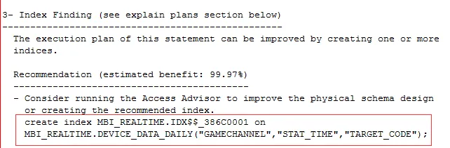 我们来一个一个看问题,首先是创建索引,这个看起来目标明确,但是具体来做,就需要一些技巧了, 对于这类的问题,个人比较偏好dbms_sqltune.report_tuning_task,因为调用方便,简单而且能很快出结果。不到1分钟分析结果就出来了,提出了3点建议,一个就是收集统计信息,一个是修改SQL Profile,还有一个就是创建索引,我们的目标明确,就是索引的改进,建议里面会根据数据的选择度来进行评估和分析,还是比较全面的。