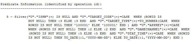 可以看到走了filter过滤,using部分和表中的数据映射存在重大的偏差,内部的映射竟然是一大堆的case when的形式。