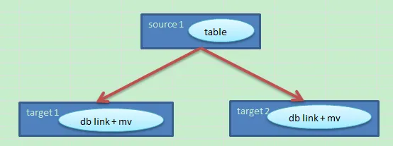 今天和开发的同事讨论一个问题,他们说source 1的环境中存在一个表,现在希望目标环境target 1和target 2中都需要用到这部分的数据。