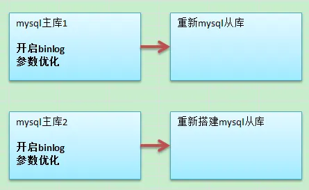 所以就简单进行了评估,发现还有一台mysql服务器也没有开启binlog,而且也没有从库服务器,于是这个问题的修复就是需要重新搭建两个从库。而binlog的开启需要重启mysql数据库,所以任务就很自然变成了在特定的维护窗口去重启这两台mysql主库服务器,然后在这个基础上搭建从库。