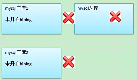 但是让人意外的是准备在线搭建从库的时候,发现主库中没有开启binlog,所以我们看到的从库其实是一个独立的主库,而个真正的主库服务器也已经裸奔了很长时间,其实没有从库,想想这种情况,就让人后背发凉,需要赶紧修复这个问题。这个时候发现问题情况如下: