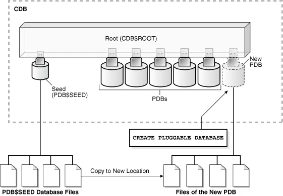 SQL> CREATE PLUGGABLE DATABASE pdb1 ADMIN USER pdb1admin IDENTIFIED BY oracle;
