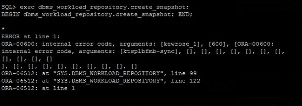 ORA-06512: at "SYS.DBMS_WORKLOAD_REPOSITORY", line 122