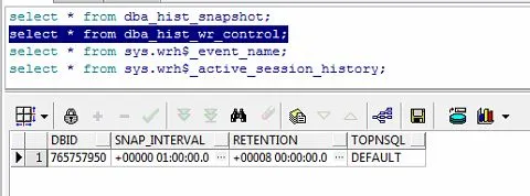 首先查看了awr的设置,发现都是默认值,这个地方没有变动。