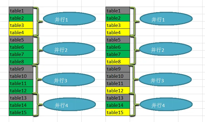 首先是关于很多的表怎么把它们合理的进行并行切分。