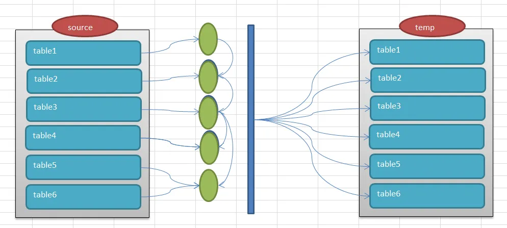 首先在数据源头的schema中存在着一些表,我们假设为table1,table2,table3...