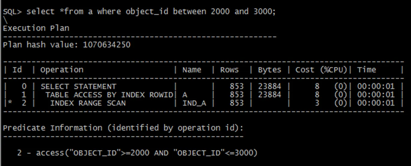 这个时候使用object_id来做查询,就会走跳跃索引扫描。尽管索引列是(object_type,object_id,object_name),但是通过object_id能够筛查出很小比例的数据。